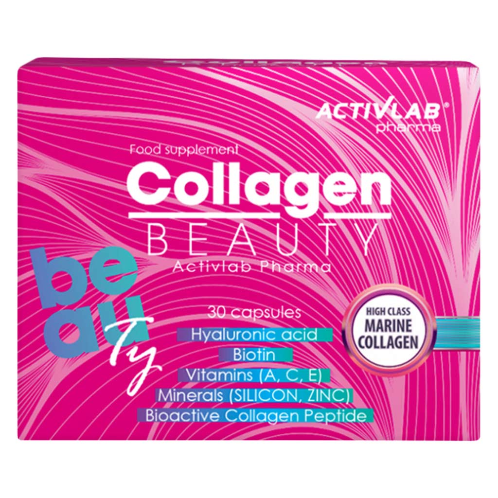 Activlab Pharma Collagen Beauty Capsules offers a comprehensive blend of ingredients aimed at promoting skin, hair, and nail health. This type of collagen is believed to improve skin firmness and elasticity. Collagen is a protein that provides structure to the skin and supplementing it may help reduce signs of aging. Biotin is a B-vitamin that supports the growth of hair, skin, and nails. It's often included in beauty supplements for its role in promoting healthy-looking hair and nails. Vitamin C is essential for collagen synthesis, which is important for maintaining skin elasticity and strength. Additionally, it acts as an antioxidant, protecting the skin from damage caused by free radicals, which can contribute to premature aging. Vitamin A and E have antioxidant properties and are important for skin health. Vitamin A supports skin cell turnover, while vitamin E helps protect skin cells from damage caused by free radicals. Niacin and riboflavin are B-vitamins which support overall skin health. Niacin can help improve the texture of the skin, while riboflavin plays a role in maintaining healthy skin. Hyaluronic acid is known for its ability to hydrate the skin by retaining moisture. This can help improve skin texture and reduce the appearance of fine lines and wrinkles. Overall, the combination of these ingredients in Activlab Pharma Collagen Beauty Capsules aims to provide support for various aspects of skin health, including hydration, elasticity, and protection against premature aging.
