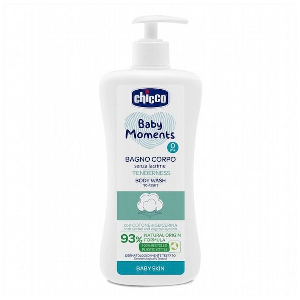 Chicco Baby Moments Tenderness Body Wash is composed of 93% ingredients of natural origin and respects the hydrolipidic balance of the thin and delicate skin of new-born. Formulated with 93% of ingredients of natural origin, Chicco Baby Moments body wash No-Tears Tenderness is enriched with nourishing cotton extract and vegetable glycerine. Enriched with fresh talc scent and cotton extract to deeply nourish the skin. Gently cleanses baby’s skin, leaving it pleasantly scented. Specifically designed to take care of babies’ skin daily. The Tearless Body Bath of the Baby Moments line is dermatologically and ophthalmologically tested.