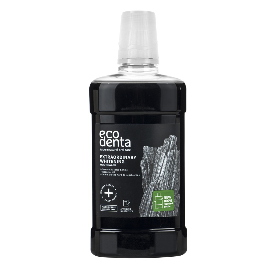 Ecodenta Extraordinary Whitening Mouthwash is a transparent mouthwash that turns black when you shake it. Oak Charcoal + Salts + Mint essential oil star as an extraordinary combo in the whitening mouthwash. Whitening mouthwashes have a low concentration of sodium hexametaphosphate, potassium pyrophosphate, and sodium citrate. These ingredients work to whiten teeth either by bleaching or by removal and control of stains. Salt acts as a surface abrasive and can definitely make teeth look whiter. Ecodenta has the mission to revolutionize the world of oral care by having nature’s finest and healthiest ingredients mixed to perfection through modern science. The brand's philosophy has always been nature and innovation focused and they constantly raise the bar by working with the best of the best in the global fields of biology, chemistry, odontology, dermatology and cosmetics.