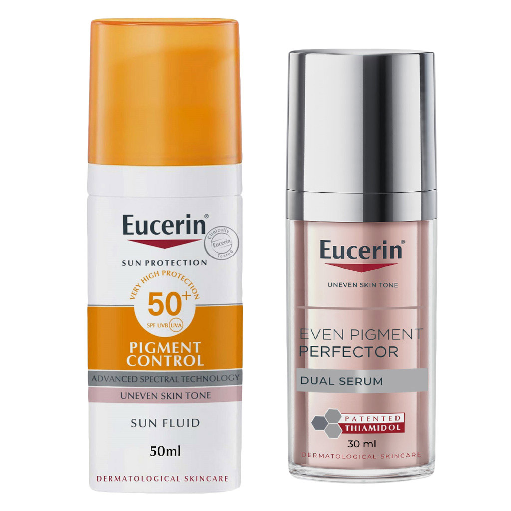 Promo Pack of Eucerin even pigment perfector dual serum + Eucerin sun protection pigment control sunscreen SPF50+ sun fluid