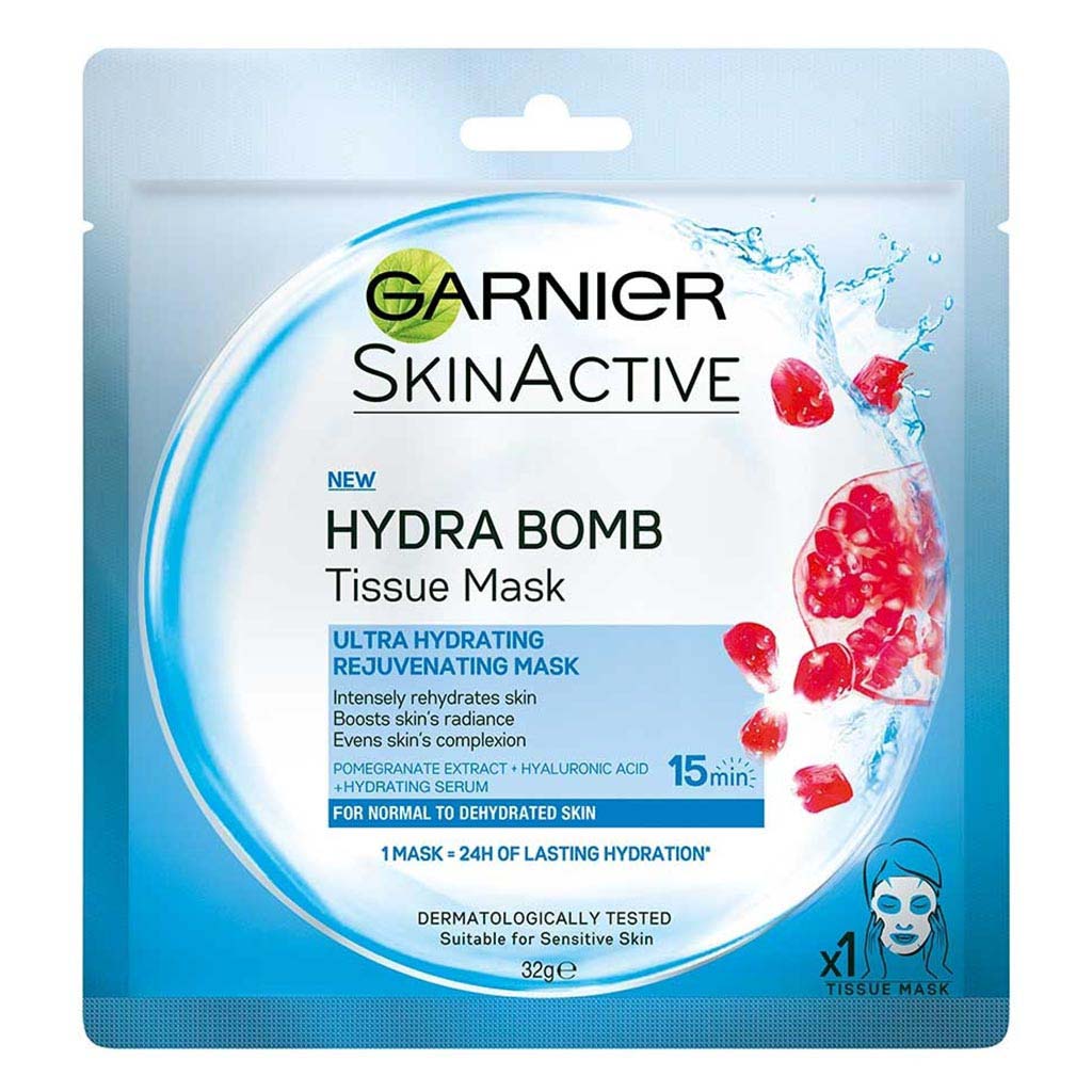 Garnier SkinActive Hydra Bomb Ultra Hydrating and Rejuvenating Facial Tissue Mask with Pomegranate Extract For Normal To Dehydrated Skin, 32g 1's