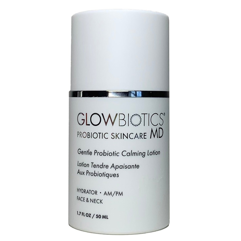 GlowBiotics Gentle Probiotic Calming Lotion For Irritated Skin works to soothe, soften, and hydrate even the roughest and most irritated skin, all while strengthening your skin's natural barrier. By calming inflamed skin, it reveals a visibly brighter and more even complexion for a youthful, dewy glow over time. Topical probiotic act as a protective shield and strengthen the skin's ability to repair itself. With its anti-inflammatory and antioxidant benefits, this unique peptide rich lotion helps soothe red, inflamed skin for a more vibrant complexion. Hyaluronic acid draws water into the skin, imparts a plumping effect on lines and wrinkles. This lotion can be used post non-ablative treatment to calm the skin. GlowBiotics utilizes this good bacteria, peptides, botanical complexes and vitamins to create the look and feel you've always wanted for your skin. The unique products can be integrated into any skincare routine to help prevent and protect the skin from the negative effects of lifestyle, hormone imbalance, prolonged stress, chronic health issues and age. Suitable for irritated skin due to concerns such as acne prone, polycystic ovary syndrome, pregnancy, post pregnancy, redness and rosacea, shaving issues, and thyroid fluctuations. The result is healthy, well-balanced, more youthful skin.