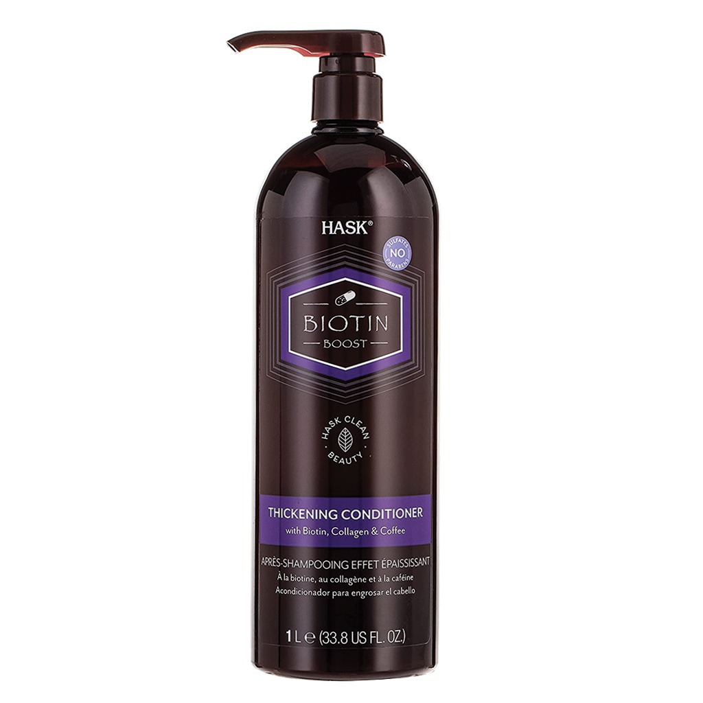 Hask Biotin Boost Thickening Conditioner gives fine, flat strands of hair the boost they crave. This conditioner helps promote thicker-looking hair with biotin for volume, collagen for strength, and coffee to help boost strands.