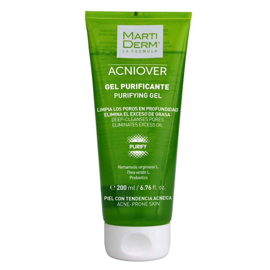 Marti Derm Acniover Purifying Gel reduces excess oil without drying, respecting the skin’s pH and rebalancing with its prebiotic content, green tea and witch hazel extract. This facial cleansing gel for acne deep-cleanses pores, reduces excess oil and balances the skin microbiota. It does not dry the skin out and respects its ph. This gel has an 100% antibacterial effect and in combination with Cremigel reduces blemishes by 83% and reduces sebum by 70%. This gel has an incredibly fresh scent and doesn't give a pulling sensation, making the skin comfortable and properly cleansed.