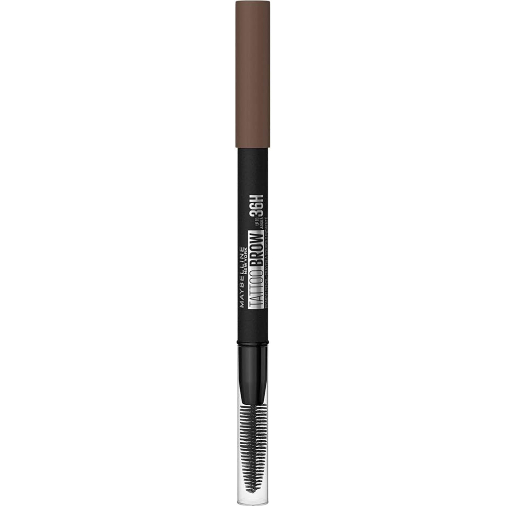 Maybelline Tattoo Brow 36H Eyebrow Pencil 05 Med Brown is designed to help you achieve perfectly defined and filled brows that last up to 36 hours. This highly pigmented eyebrow pencil effortlessly enhances the shape and fullness of your brows, providing an intense color payoff with every stroke. The waterproof formula ensures your brows stay in place all day, regardless of the elements, and won’t fade or smudge. The pencil’s unique design includes a built-in spoolie brush, which allows you to blend the color for a more natural and flawless finish. Whether you need to define the arch or fill in sparse areas, the smooth pencil texture allows for precise application, while the brush helps soften and blend any harsh lines. Simply draw vertical strokes to mimic natural hair, use the spoolie to blend, and you're left with brows that look effortlessly defined and full. Suitable for all skin types, the Maybelline Tattoo Brow 36H Eyebrow Pencil is ideal for anyone looking for a reliable and easy-to-use product that provides long-lasting results. Its rich, medium brown shade is versatile and suits a variety of eyebrow tones, ensuring a natural, flattering look for all. This eyebrow pencil is perfect for those who want defined, sculpted brows that stay put for hours without needing touch-ups. The combination of the high pigmentation, waterproof formula, and built-in spoolie brush makes it the ultimate tool for achieving natural yet defined brows that stand the test of time.