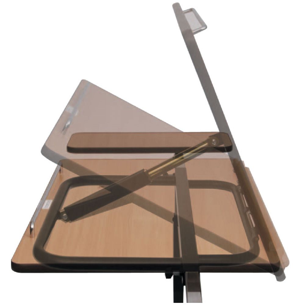 Roma Over Bed/Chair table is a single handed adjustable table top, which can be adjusted in height, width and angle. Extension piece allows table to be used over a 1.5 m/5 bed. Reversible side table for right or left-hand use fitted with four locking brake, castors safety locking device to avoid over extension. Laminate top with beech finish makes it attractive.