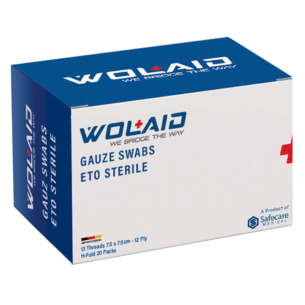 Wolaid ETO Sterile Gauze Swabs 7.5*7.5cm, 12 Ply, Pack of 20*5